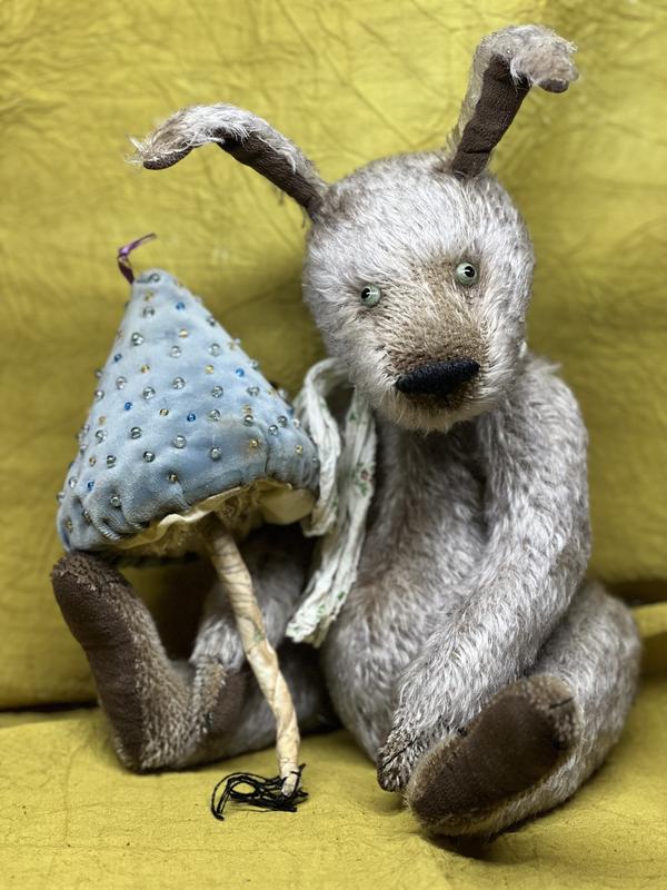 Made from German mohair, Crazy Bunny is a delightful combination of softness and vintage charm. The handmade glass eyes in a vibrant green color give this bunny a mischievous and endearing expression, adding to the overall whimsy.