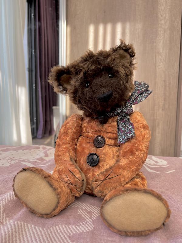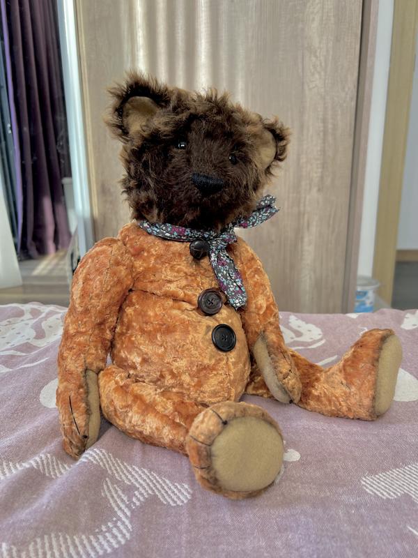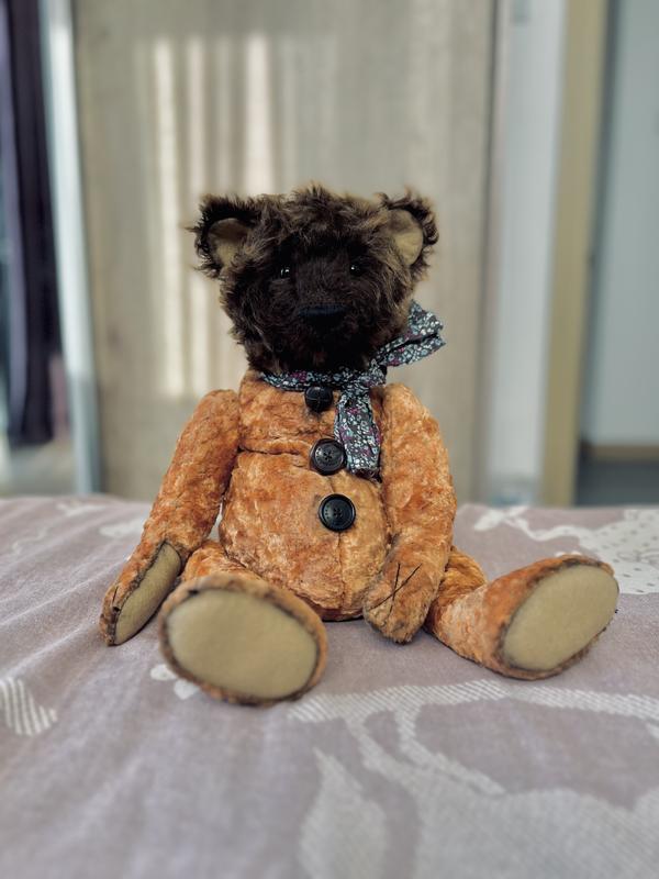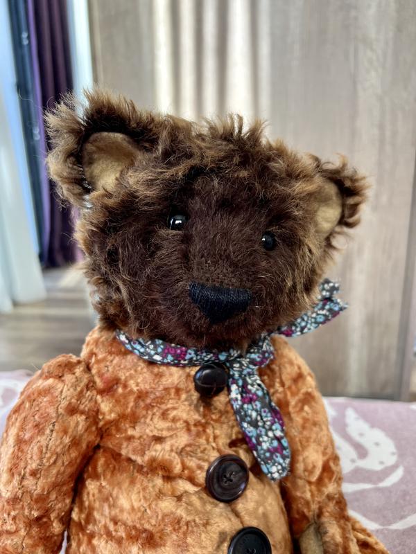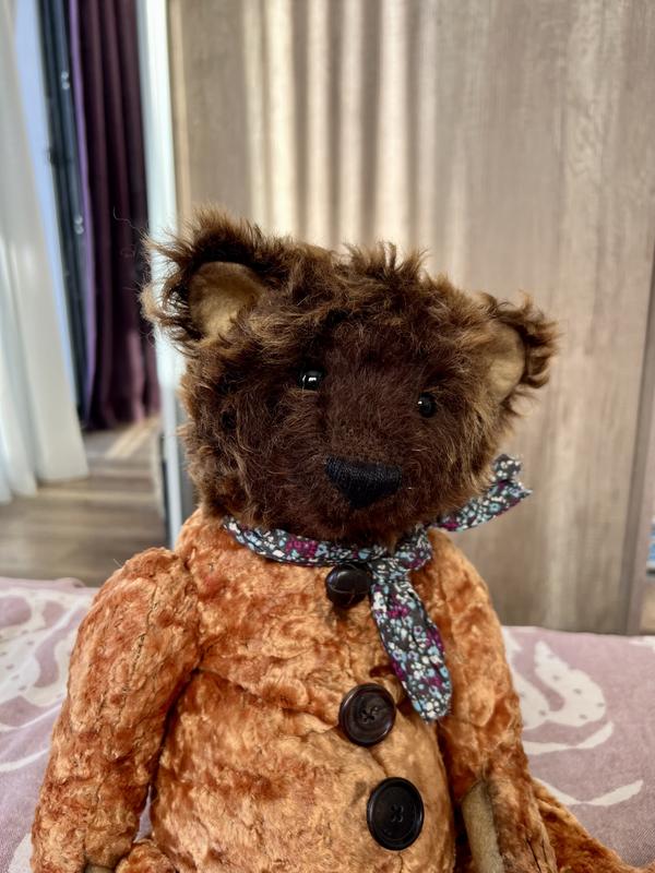 Meet Bear in Pajamas, a delightful handmade creation that exudes vintage charm. Crafted with care, this bear is made from soft German mohair, giving him a classic and timeless appeal. Dressed in adorable pajamas, the attention to detail is evident in every stitch.
