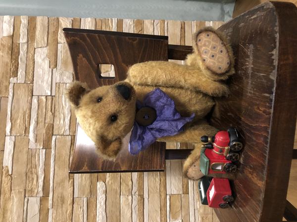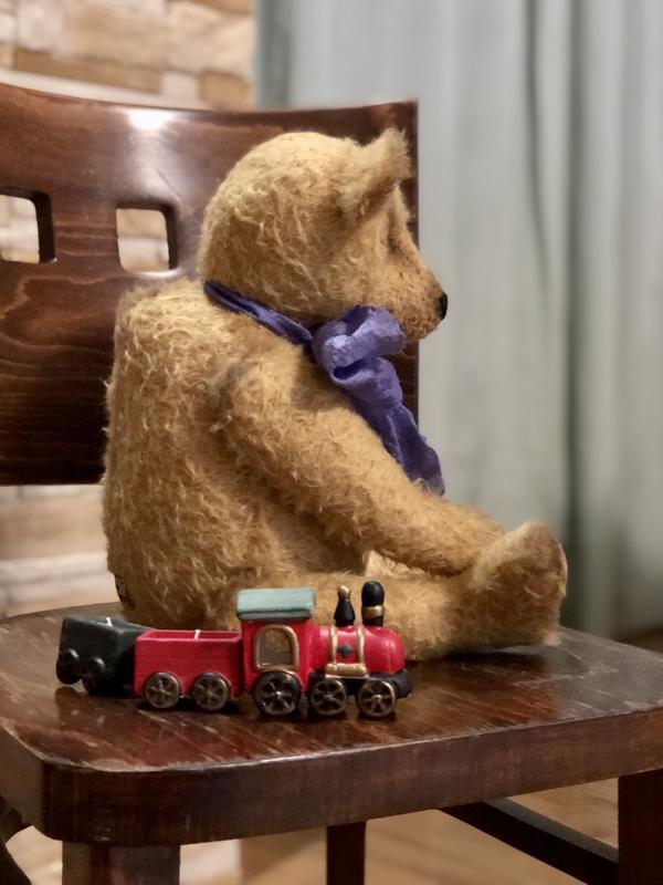 Julian is crafted from German mohair, enriched with the subtle touch of oil paint for a distinctive and vintage appearance. His delightful features include the ability to turn his head, hands, and legs, adding a playful element to his personality.