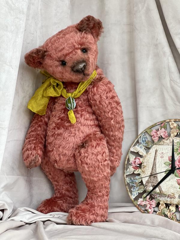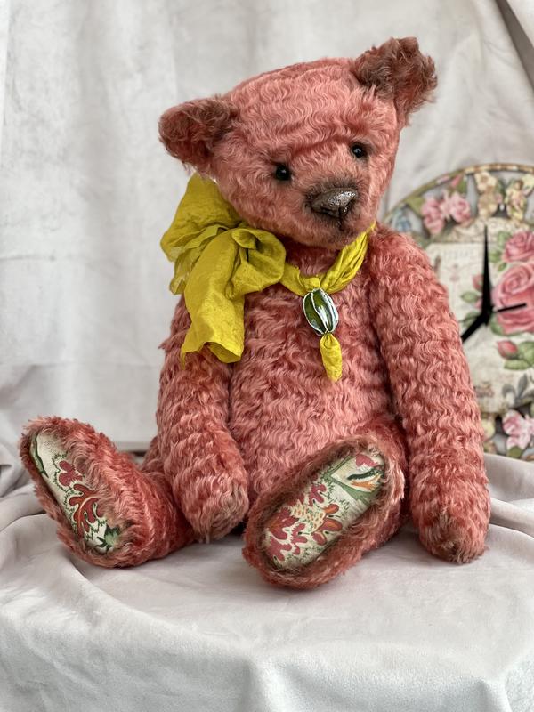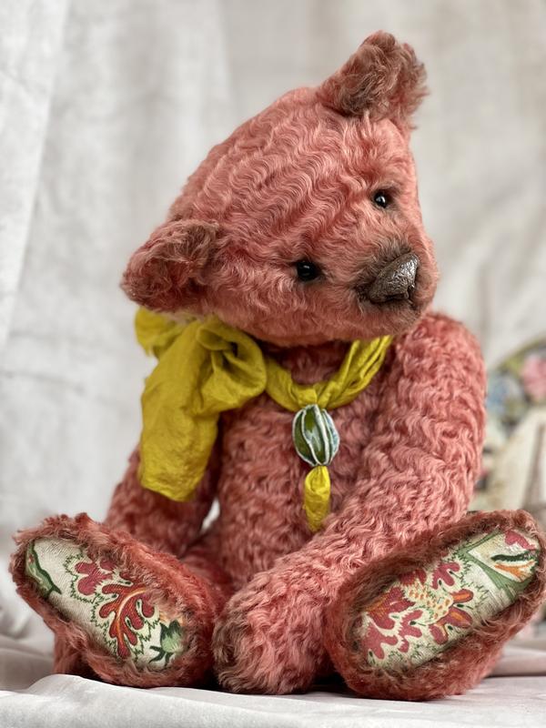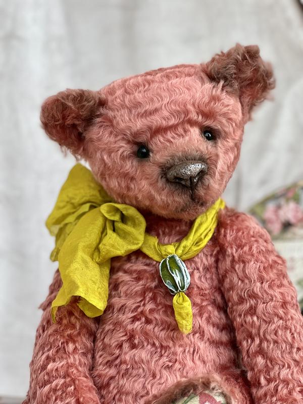 Strelitzia's filling of cedar sawdust, wood wool, and mineral granulate not only provides a plush and huggable feel but also adds a natural scent reminiscent of the outdoors. The meticulously sculpted wet nose and handmade glass eyes contribute to the lifelike expression that defines this bear's unique character.