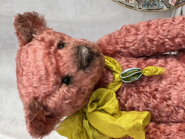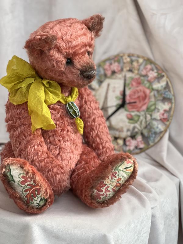 The poseability of Strelitzia's head and legs, fastened with cotter pins, discs, and metal washers, allows for a range of expressive stances. This bear is not just a toy; it's a celebration of craftsmanship, artistry, and the beauty of nature.