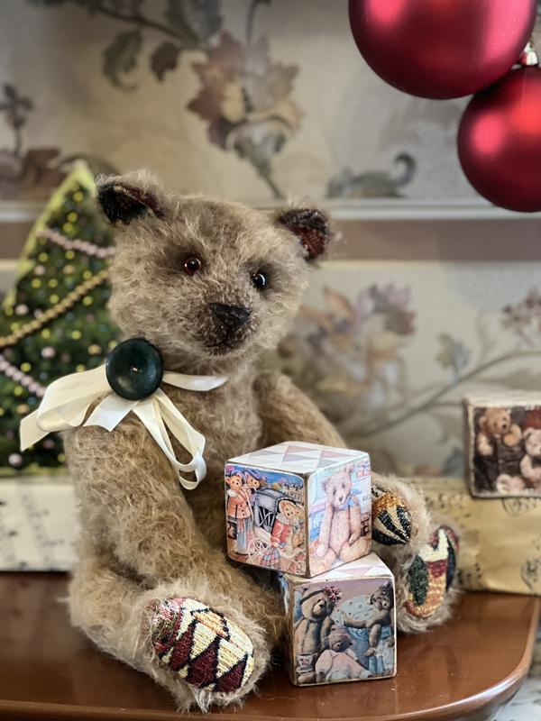 Meet Tom, a delightful 30 cm bear crafted with care from the finest German mohair. This charming companion is filled with a blend of wood wool and mineral granulate, providing a huggable and substantial feel.