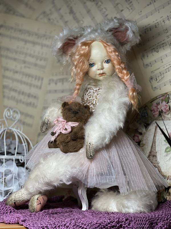 Introducing 'My Girl Pearl,' a charming cat crafted from Schulte's German mohair, exuding a delightful vintage style.