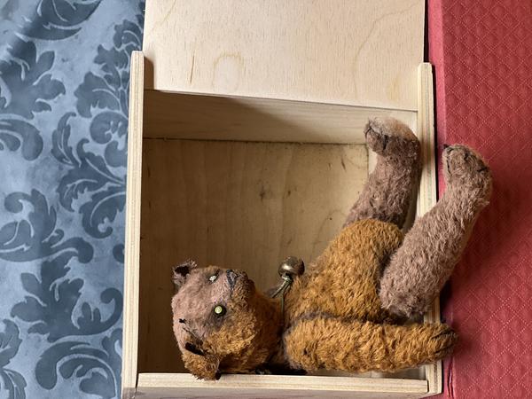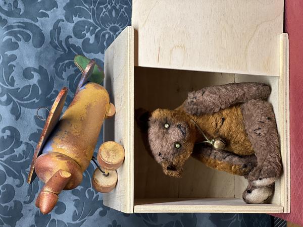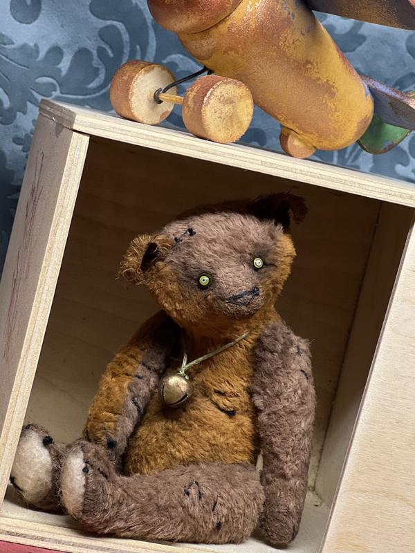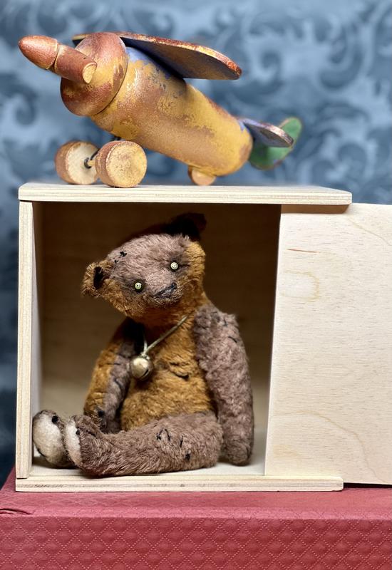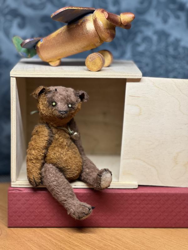 Crafted from luscious viscous German fabric, this bear boasts a unique texture that adds a touch of luxury to its vintage charm. The filler, a combination of wood sawdust and wood wool, ensures a delightful firmness that makes this little bear perfect for cuddles.